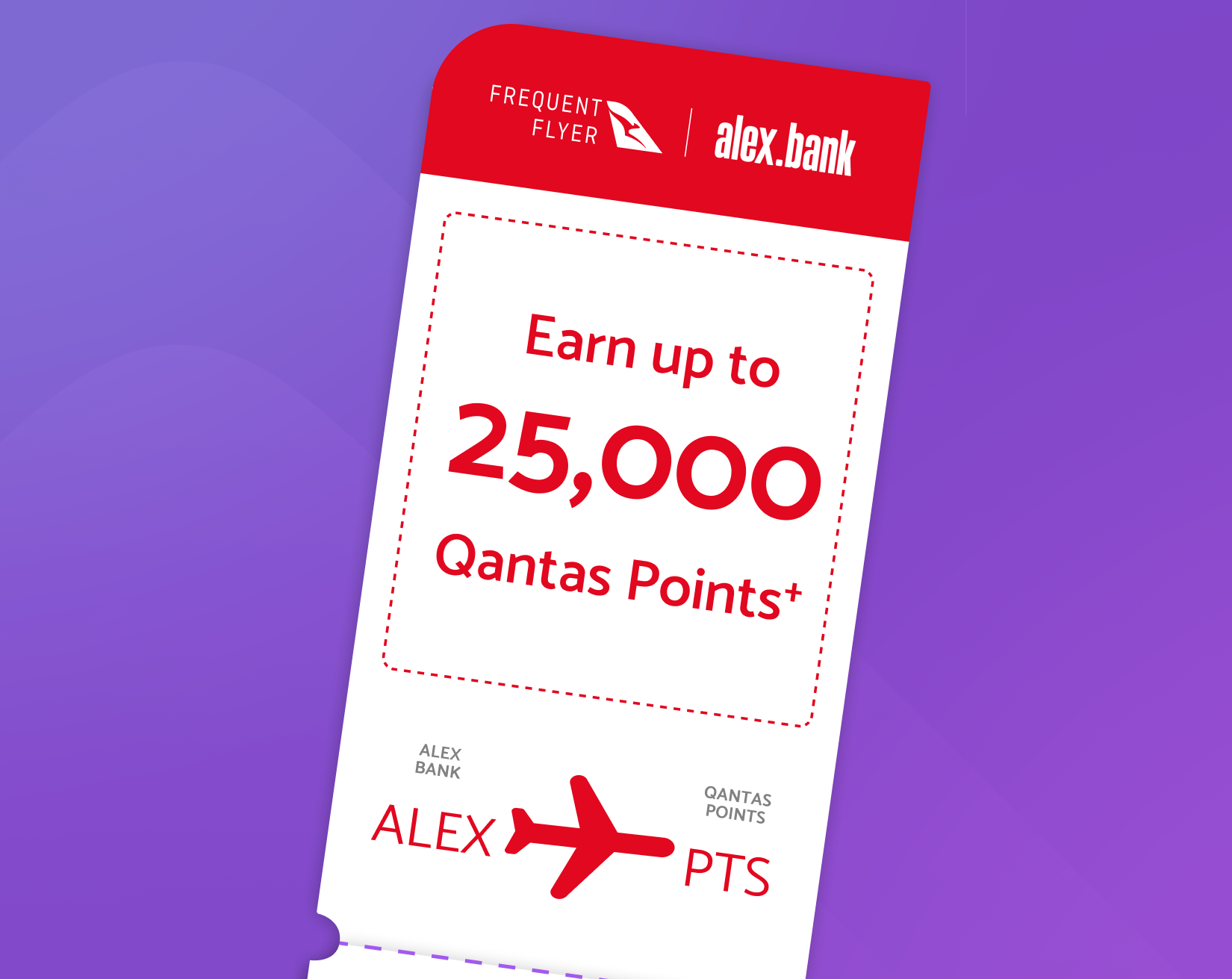 Earn 100 Qantas Points with every $1,000 invested in a Term Deposit from Alex.Bank, up to 25,000 points+